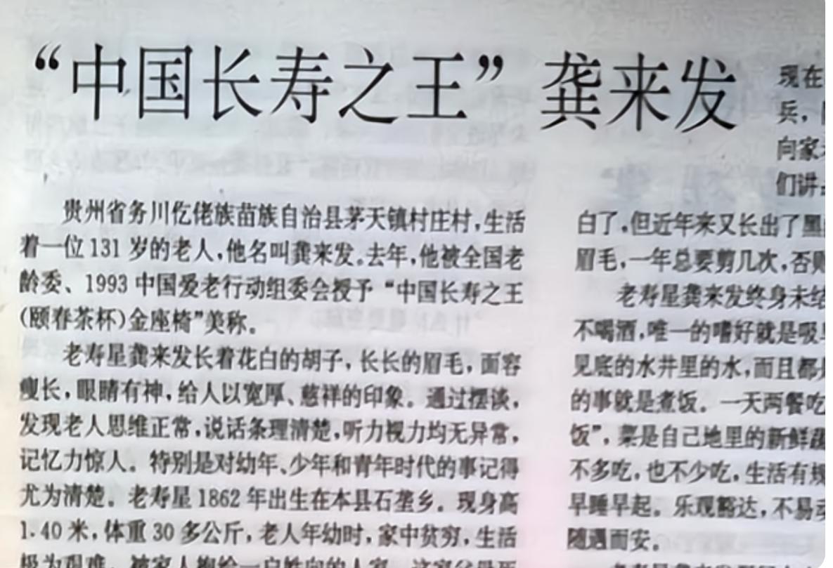 龚来发133岁是真实的吗?他真实年龄是多少?长寿原因是啥